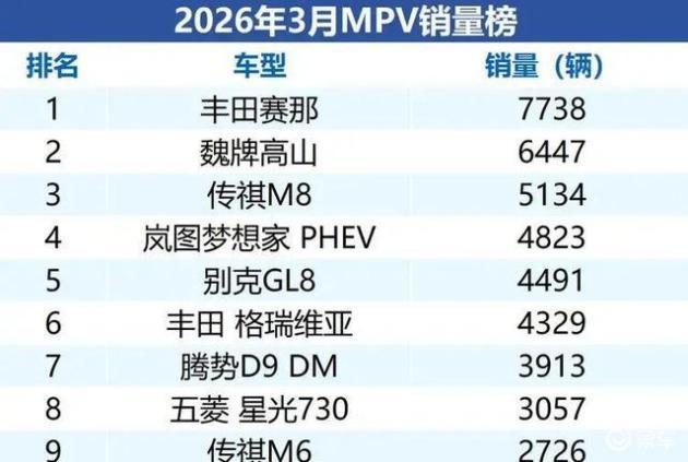 3月MPV销量榜变天:赛那7738辆领跑股票配资网官网,高山与M8谁更适合家用