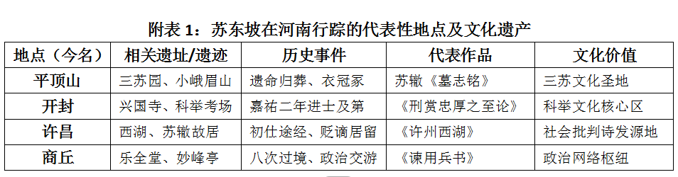 河南省“十五五”规划建议专门提出,加强三苏文化研究传承刻不容缓。“三苏”即苏洵、苏轼、苏辙。以苏东坡(苏轼自号“东坡居士”,民间通称“苏东坡”)为代表的“三苏”父子是中华优秀传统文化的标志性人物,他们的文学成就、思想学术、人格精神历久弥新。苏东坡作为中国宋代文化的巅峰代表,其生平轨迹与文化遗产分布具有显著的地理文化空间特征。河南作为北宋政治文化中心,不仅是苏东坡科举成名之地、仕途转折之所,更是其最终灵魂归依之处。从文化地理学视角看,苏东坡在河南的行踪不仅体现了个体与地域的互动关系,更承载了中原文化的深层记忆与空间表征。本报告以历史文献、地方志书(如《郏县县志》等)及当代学术研究成果为基础,运用文化地理学的 “空间-地方-景观” 分析框架,系统梳理苏东坡在河南的行踪轨迹、文化实践与遗产分布,揭示其中蕴含的文化认同建构机制,并提出文化遗产保护与活化的策略建议,以期为河南省历史文化资源的整合利用提供学术支撑和决策参考。